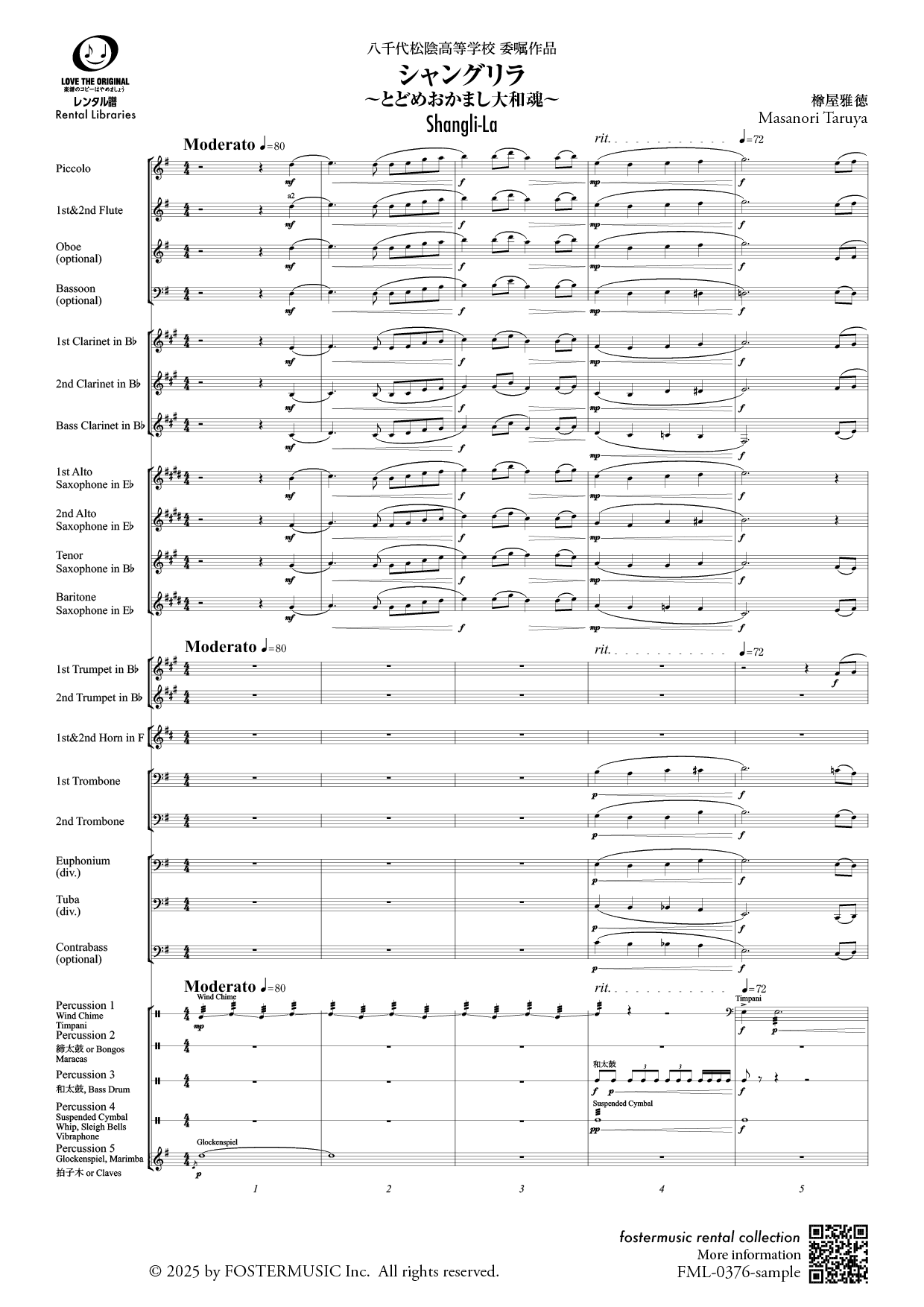 • 演奏形態: 吹奏楽大編成(43 – 44パート)